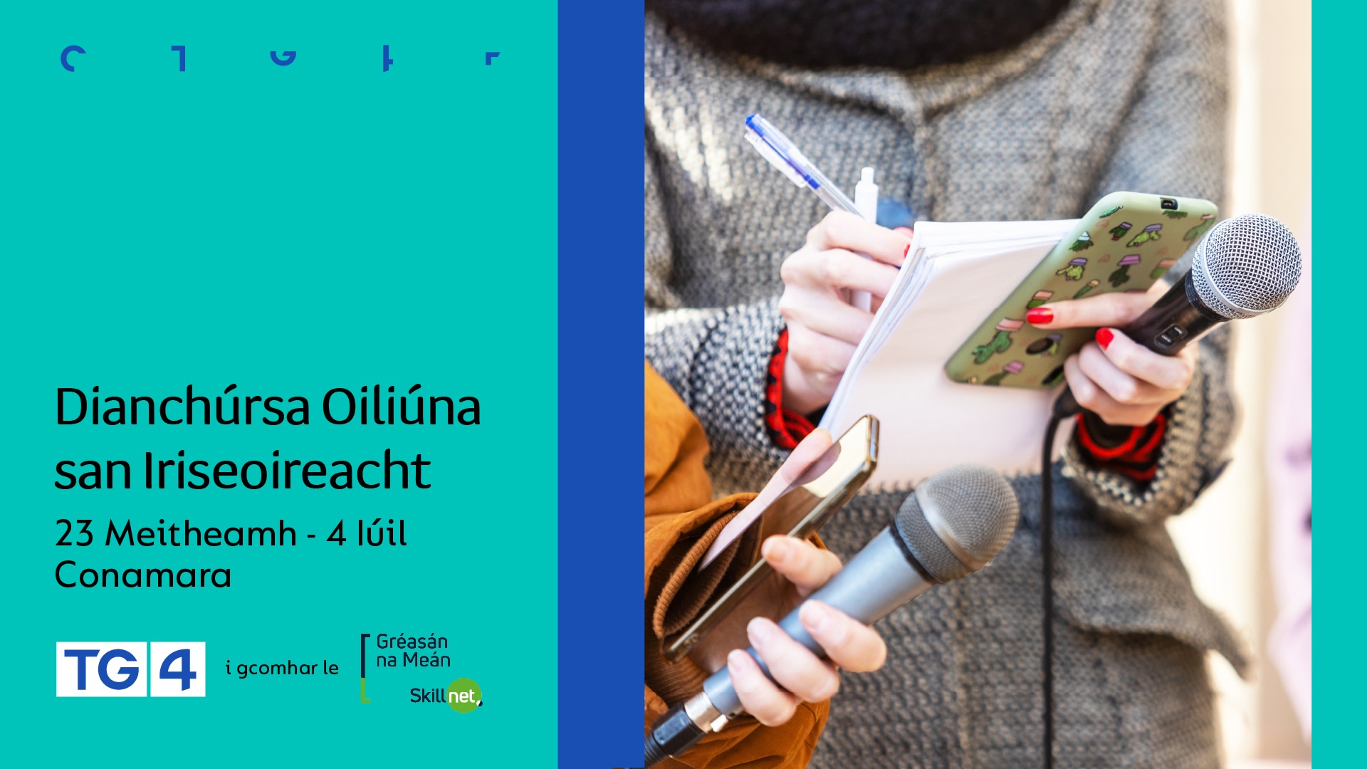 Tá an cúrsa nua iriseoireachta á chur ar fáil ag TG4 i gcomhar le Gréasán na Meán.